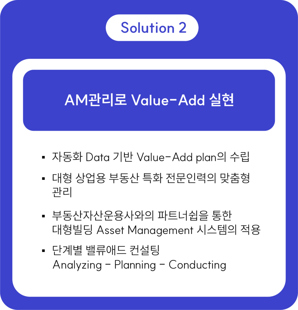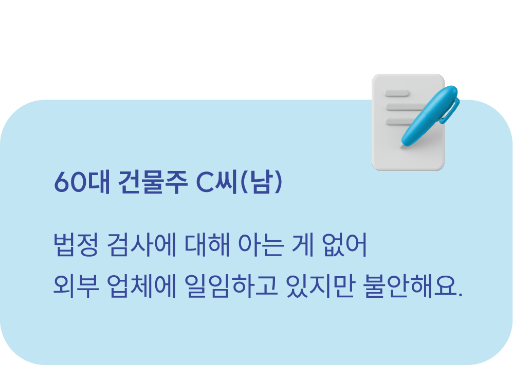 복잡한 직접관리, 비전문적인 상주관리인, 비싼 위탁 용역업체 대신 해외 펀드 투자자 또는 기관투자자의 대형빌딩에 적용되는 체계적이고 세분화된 자산관리 서비스를 중소형빌딩에 적용해 건물주는 관리현황을 편하게 보고받고 자산의 가치를 상승시켜 최대한의 수익을 실현시킬 수 있는 자동화 종합 자산관리서비스, 인스페이스가 시작합니다.