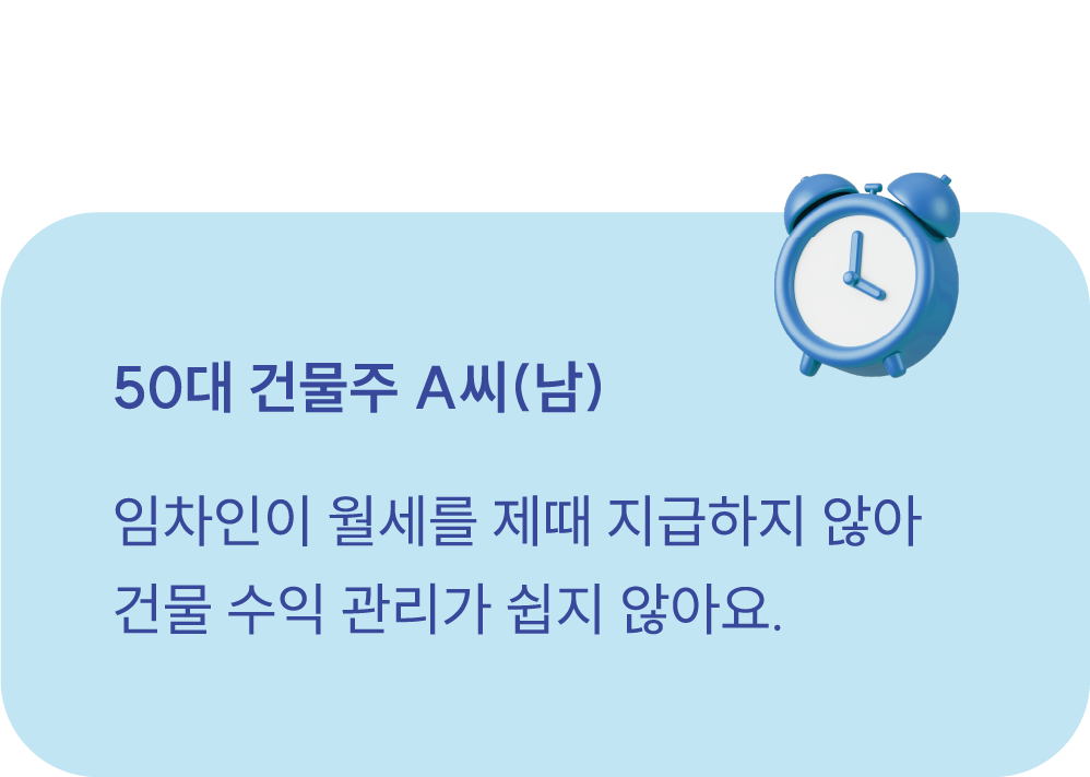임대료 수납관리부터 각종 민원 및 이슈 처리, 임대차 계약 관리와 일정관리까지